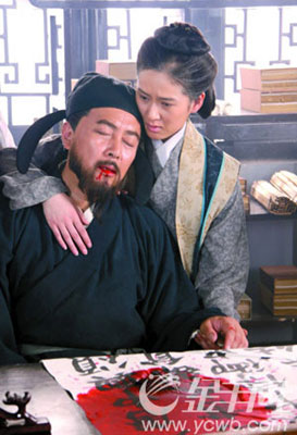 經過兩個多月的拍攝,我國首部書法題材的大型電視連續劇《大唐書魂顏真卿》重頭戲粉墨登場。唐國強在其中飾演書法巨匠顏真卿,被媒體稱為“中國式美女”的年輕女演員趙柯則飾演其結發妻子韋蕓。兩人表演時情真意切,儼然一對“老夫老妻”。