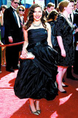 電影大明星、監(jiān)制迷你劇集《約翰·亞當斯》獲提名的湯姆·漢克斯也同夫人一同現(xiàn)身紅毯,憑借《伯納德與桃瑞絲》獲提名的蘇珊·薩蘭登也讓紅毯“星味”大增。去年斬獲艾美獎喜劇類最佳女主角的“丑女”亞美莉卡·弗雷拉一直深受觀眾喜愛,但今年的她胖了很多,一身并不合體的黑裙讓人實在不敢恭維,相比《丑女貝蒂》中的配角維妮莎·威廉姆斯一身山水畫風情的長裙黯然失色,只不過“貝蒂”更具喜劇效果。