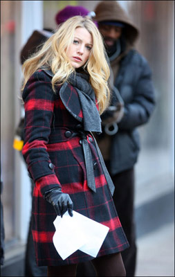 昨日(2月2日)記者拍到了《緋聞女孩》最新片場照,雖然美國現在可以說是天寒地凍,但是我們的時尚達人布萊克·萊弗利卻穿著妮子紅格大衣,黑色牛仔褲長筒靴,為我們演繹最新的歐美時尚,小編帶大家一睹最新的風向標吧。