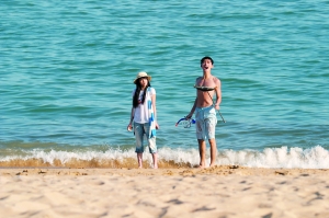 日前,被譽(yù)為“山寨版《流星花園》”的《流星雨》在廈門某酒店拍攝了海邊度假野炊的群戲。四位男主角張翰、俞灝明、朱梓驍和魏晨與兩位女主角鄭爽、彭?xiàng)钜灰滑F(xiàn)身拍攝。不過,從最新曝光的劇照看來,張翰與鄭爽(下圖)的海灘嬉戲戲看不出有任何的富貴氣,反倒更像是小孩子之間的“過家家”游戲。不過,張翰從海水中走出的濕身照,還是能看到他為這個(gè)角色鍛煉出來的一點(diǎn)點(diǎn)腹肌。