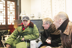 陳凱歌是華人導(dǎo)演中惟一獲得過金棕櫚大獎的,因此福茂來到中國后第一個想見的導(dǎo)演便是他。昨天下午,《梅蘭芳》劇組在懷柔拍攝一場黎明和陳紅的對手戲。3點左右,福茂先生一行3人在工作人員的引導(dǎo)下直接來到了拍攝現(xiàn)場。福茂見到坐在監(jiān)視器前的陳凱歌導(dǎo)演后,先來了一 個熱情的擁抱,隨后就坐在了監(jiān)視器前,與導(dǎo)演親切地交談起來。