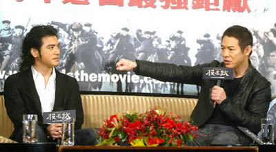 話鋒一轉,李連杰又爆導演陳可辛一度在片場掉淚,陳可辛自我解嘲:“我不是在哭,是眼睛比較水汪汪。”其實是剛拍“投名狀”動作場面,才發現有很多對動作戲的想法都無法用“行話”向武術人員講清楚,導致進度嚴重落后,又急又仿徨,終于病倒。雖然當時已因“如果.愛”得了金馬獎,感受到莫大的鼓舞,卻還是沒突破拍片困境,一度想跟制片人要求換人接手。