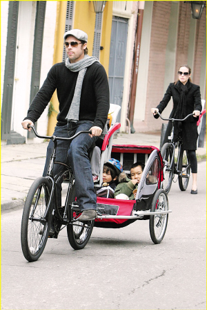 布拉德·皮特早前宣布為新奧爾良第9街重建150間房屋的“Make It Right”計劃,現(xiàn)得到威爾·法瑞爾等人的支持,認投資助興建其中一間房間。心情大好的布拉德·皮特和嬌妻安吉麗娜·朱莉帶孩子們郊游,當起了“人力車夫”。