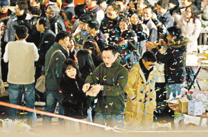 當電視熒幕開始倒數,陶大宇和阿寶就走在一起高聲大叫“10、9、8……”,現場此起彼落的鞭炮聲和灑落的彩色紙屑,讓他倆也變得情緒高漲。阿寶把預先準備好的香檳取出來,但不知何故弄了好些時間仍無法打開。一開始陶大宇一直在身邊寵溺地看著,最后還是拿過來幫忙,阿寶便挪動身體靠近,與前夫兩人四手緊握著瓶身,只見一個怕得瞇起雙眼,一個面容緊張地終于打開,兩人都好像孩子般歡呼尖叫,非常興奮。