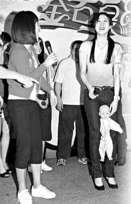 鐘嘉欣宣傳新劇重現"產子"戲份 大擺古怪動作(圖)