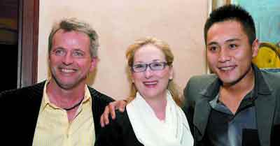 劉燁每天以日記的形式記錄此次北美之行,他在傳給本報的日記中說:“再次見到梅麗爾讓我突然間有些不知道該說些什么,可就在我一愣神的時候,她已經面帶笑容地給了我一個擁抱,她戴著一副黑框眼鏡,顯得年輕又高貴,我們都不自覺地想起了曾經在一起拍戲的日子。”他同時還爆料,聽說來年美國奧斯卡的終身成就獎,準備頒給她。 本報記者 唐愛明