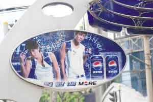 陳冠希的“艷照門”發(fā)生后,許多本來與陳簽約的公司紛紛要求解約,以樹立正面的品牌形象。但是,近日記者在上海發(fā)現(xiàn),某可樂廣告牌上依然有陳冠希,更離奇的是,與陳冠希在一起的,還有“情敵”謝霆鋒。