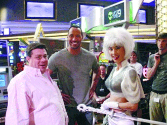 在好萊塢環球影城大火中躲過一劫后,黃圣依參演的迪斯尼巨制《巫婆山》正式轉場到美國賭城拉斯維加斯。黃圣依的外星公主造型曝光后,昨天她與巨石·強森拍攝了兩人合作的第一場戲——外星公主在外星兵團的保衛下乘坐飛碟降臨地球。