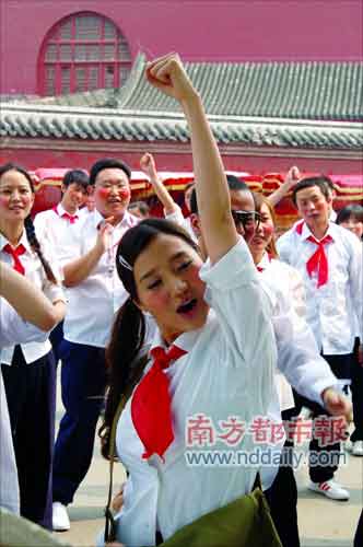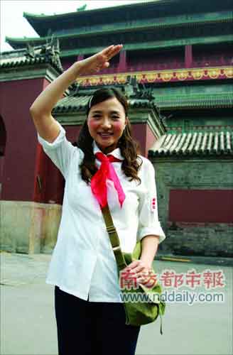 白襯衣、紅領(lǐng)巾、黃書包……6月15日下午,阿朵現(xiàn)身北京鼓樓大街胡同,為新歌《啦啦隊(duì)歌》拍攝MV。這首收錄于她新專輯的歌曲由阿朵一手包辦詞曲,旨在為08北京奧運(yùn)搖旗吶喊。拍攝現(xiàn)場,阿朵與同門師弟后舍男生還有工作人員齊上陣,整齊劃一的加油手勢,營造出朝氣蓬勃的氣氛。