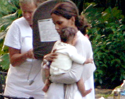 據國外媒體報道,41歲的哈莉·貝瑞上周被拍到抱著女兒娜拉出現在洛杉磯的一個公園里,哈莉·貝瑞的母親Judith Ann也在場,不過,小娜拉的頭埋在媽媽懷里,讓人看不清長相。