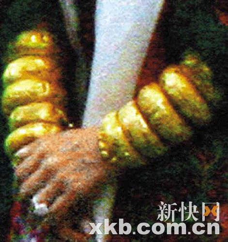 嘉玲手上的龍鳳鐲和鉆戒分外搶眼。