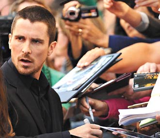 中新網7月25日電 《蝙蝠俠:黑暗騎士》男主角克里斯汀·貝爾(Christian Bale)上周日因涉嫌襲擊母親Janny和二姐Sharon鬧上警局,后接受完警方訊問后獲釋。前日,貝爾出席西班牙首映禮,電影公司特別安排15輛房車接載他跟妻子Sandra Blazic,以及同片演員進場,場面極具氣派。貝爾更花上一個半小時為紅地毯上數以百計影迷簽名,又細心詢問影迷名字,明顯打親民牌,藉此挽救人氣。