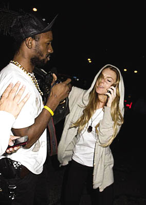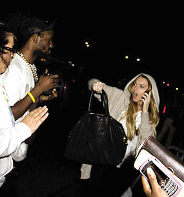 上周日晚,Bowery酒店門前,身穿連帽衫的琳賽·洛韓企圖跨過一個障礙,就在這時,意想不到的事情發生了——正在打電話的她誤以為一名記者企圖將她絆倒,于是她揮拳打向了那名記者!打完之后,她對著電話那頭的人說:“噢,我的上帝,我打了一名狗仔記者!