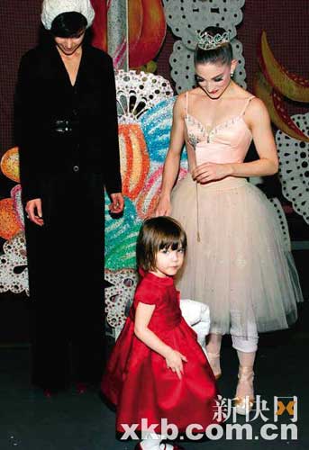 組圖:凱蒂攜愛女看舞劇 小蘇瑞紅裙裝與演員合影