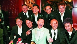 梁漢文(中)結婚,大批兄弟撐場。