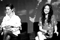 然而,從兩人昨天的著裝上看,電影《風(fēng)聲》尚未開拍,兩位女主角“斗戲”的好戲卻已經(jīng)提前上演了。李冰冰和周迅分別選擇了白色和紅色,風(fēng)格迥異,對比強烈。李冰冰一襲白色泡泡袖風(fēng)衣,氣質(zhì)沉靜;周迅則穿了一件綴滿亮片的紅色鏤空小禮服,配上爆炸式發(fā)型,十分性感。跟電影 《風(fēng)聲》里李寧玉的陰沉穩(wěn)重、顧曉夢的天真美艷頗為相似。記者 楊蓮潔