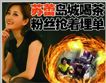 交談中,兩名中學生模樣的女孩并肩走了過來,一張口就是“蘇蕾姐姐”。“聽說蘇蕾姐姐要到這里來,我們倆在這里觀望了很長時間了,這次鼓足勇氣過來,希望蘇蕾姐姐能幫我們簽個名!”豪爽的“蘇蕾姐姐”二話沒說,大筆一揮,簽上了自己的名字,并免費贈送合影一次。就在記者切入正題的時候,一名女服務員笑瞇瞇地走上前來:“不是點單,是請你簽名的!”
