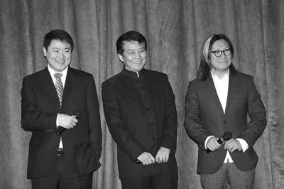 更絕的還在揭幕環(huán)節(jié),吳君如煞有介事地宣布現(xiàn)場揭幕將使用高科技聲控技術(shù),全場嘉賓好奇地等待答案揭曉,只聽吳君如吐出一句,“請童剛局長和韓三平董事長站在臺(tái)上拍三下手掌,陳可辛、黃建新、于冬(保利博納董事長)你們站在兩旁用手把幕簾拉開……”,這回全場差不多要笑暈了。記者 蔡穎