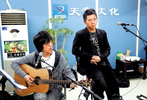 昨天,羽·泉在北京一家錄影棚中現(xiàn)身,二人正在為這周六舉行的“黃金10年”演唱會進行排練,排練間隙二人告訴記者:“只憑票房這場演唱會鐵定賠錢!