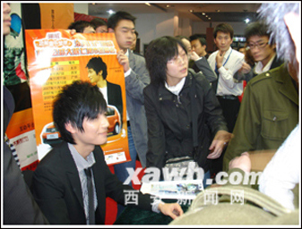 昨天下午,2007“快樂男聲”冠軍陳楚生和樂壇新星小類同時現身西安,在新華文軒西安書城參加“團聚音樂夢想”簽唱活動。獲悉消息的“花生們”提前幾個小時趕到書城,準備一睹偶像風采。然而,由于到場的歌迷太多,舉辦活動的地方能容納的人有限,加上主辦方沒有協調好,致使場面幾度混亂。