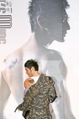 中新網(wǎng)12月13日電 黃曉明昨日在北京麗思卡爾頓酒店,為首張專輯“It's Ming”舉行全亞洲發(fā)布會(huì),獲父母捧場(chǎng)之余,更有半百“明教”歌迷會(huì)成員入場(chǎng)見證,歌迷大叫口號(hào)“歌舞天王,曉明最強(qiáng)”。現(xiàn)場(chǎng)展示了黃曉明赤裸上身及左膊頭M字雙翼紋身海報(bào),他更露出紋身與海報(bào)合影,同時(shí),他更不避嫌找緋聞女友李菲兒擔(dān)任MV女主角。