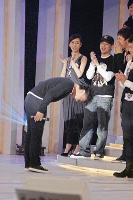 據(jù)香港明報報道,當(dāng)Eason獻(xiàn)唱《Crying in the party》時,自覺表現(xiàn)欠佳,遂大叫“重錄”,雖然這番話清晰可見,但卻跟其他歌手的說話重迭了,監(jiān)制未理會繼續(xù)錄像。Eason其后兩度與工作人員交涉要求重錄不果,氣急下臺到場外的空地“消氣”,工作人員趕忙暫停錄像,追出去了解情況。在場歌手都顯得愕然,千嬅相信只是技術(shù)問題,Eason已很紳士了。