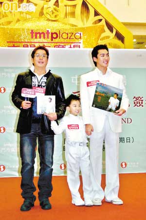 譚詠麟前天為重新灌錄的經典大碟《愛的根源》舉行新碟簽名會,吸引逾五百名歌迷捧場。大會安排兩名歌迷以阿倫25年前的大碟《白馬王子》造型現身,可愛又搞笑。 (魚)