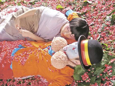 據香港明報報道,這是何超儀新歌《償還》MV的照片,陳冠希(Edison)客串演出扮布偶,MV于艷照風波爆發前,去年12月拍攝。一度因艷照事件連累不能播出,在超儀極力爭取下才重見天日。