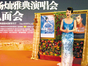 民歌四小花旦之一的湯燦將于7月15日在希臘雅典國立音樂廳舉辦“光榮與夢想·迎奧運2008湯燦雅典獨唱音樂會”。這是中國歌唱家首次在奧運會的故鄉希臘舉辦個人獨唱音樂會。