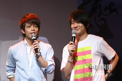 同門師兄林俊杰的亮相讓發(fā)布會(huì)現(xiàn)場掀起一陣熱潮,他和林宇中首次同臺合唱了兩人一起創(chuàng)作的歌曲《搶玫瑰》,讓現(xiàn)場歌迷大飽耳福。在演出中,兩人竟跳到臺下大派玫瑰花,引歌迷尖叫連連。這首歌其實(shí)是在講愛上“萬人迷”的“苦男”心理,林俊杰更趁機(jī)向師弟喊話,若愛上同一個(gè)人,“搞不好我會(huì)搶哦”。