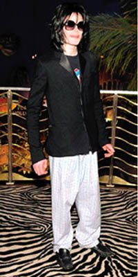 杰克遜近年飽受不利消息困擾,被指周身債之余,唱片銷量也大縮水,不過并沒有影響他慶祝50大壽的心情。上周四他現(xiàn)身賭城Planet Hollywood餐廳,與11歲兒子Prince Michael、10歲女兒Paris及6歲幼子Blanket一起吃晚飯,當日杰克遜心情甚佳,對記者面露笑容,他坐著輪椅,全身用大披風緊包,看來十分虛弱,而他拍照時西裝外套下露出的睡褲,格外引人注意。
