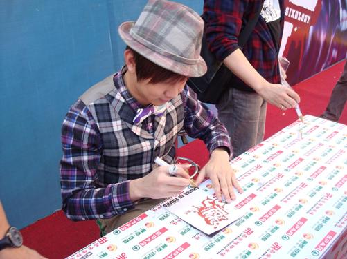 東莞簽名握手會(huì)一結(jié)束,林俊杰顧不上吃飯,就坐上商務(wù)車趕往深圳,進(jìn)行下一場的簽售會(huì),深圳簽售會(huì)現(xiàn)場的廣場被歌迷圍堵得水泄不通,當(dāng)大家看到久違的林俊杰后都大喊“JJ”的名字,林俊杰也不斷向臺(tái)下的觀眾和歌迷打招呼。因?yàn)榈綀龅母杳员姸啵挚〗芨遣活櫳眢w疲乏,與歌迷進(jìn)行互動(dòng)。