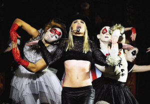 在結(jié)束了日前的歐洲宣傳行之后,布蘭妮于本周二回到“主場”紐約,亮相《早安美國》電視節(jié)目。為了給同日發(fā)行的新專輯造勢,布蘭妮在節(jié)目中演唱了新專輯的主打歌《花心男》和《馬戲團(tuán)》,除了“小丑”裝扮的伴舞演員,現(xiàn)場還亮出大型火環(huán),噱頭十足。