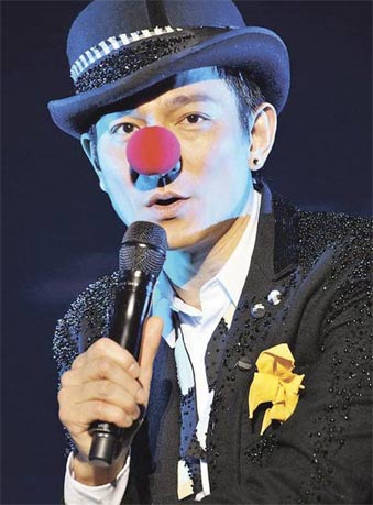 圖文:劉德華戴紅鼻子扮小丑演唱