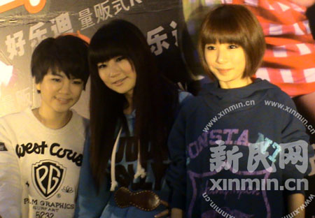 下午4時20分,S.H.E到達簽售現場。久未來內地的Selina明顯發胖,臉也圓潤了很多。當被問及是否因為事業順利而心寬體胖時,Selina否認稱,可能是自己的發型的緣故吧。