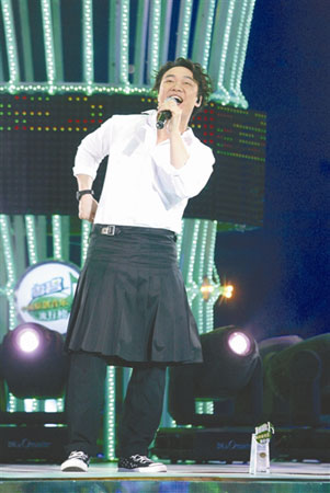 2009“雪碧中國原創音樂流行榜”日前在京揭曉,勇奪5項大獎的陳奕迅穿著裙子亮相,他稱自己近年都是自己做造型師,裙子是逛街時偶然買回來的,想體會一下當女生感覺。