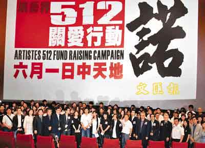 據香港文匯報報到,昨日近兩百余演藝界人士參加了記者會,短短十五分鐘談話便結束,會上先由活動召集人劉德華發言,他先為各界的支持致意,華仔又哽咽地說:“四川大地震發生,演藝界短短時間內發起行動,大家勞心勞力,但這份熱情不是一時三刻,重建需時要三、五、七年,重建災民的生活,是我們的承諾,我特別多謝中聯辦及香港電影發展基金于行動中的協助,以及西九龍中天地六月一日借出場地舉行賑災大匯演,由于時間倉卒,不夠時間向有關政府部門申請,但深信活動會得到大家的響應及支持,寄望天佑四川,天佑中國。”