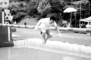 黃健翔在《快樂(lè)向前沖》中快樂(lè)落水。