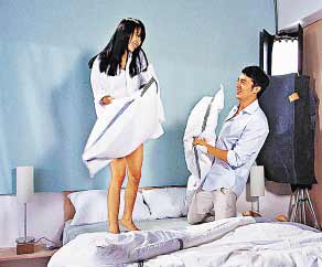日前,蔡依林在為洗頭水拍攝代言廣告。她在廣告中與男模在浴室內相擁,展示烏黑長發,又穿性感白恤衫和男模在床上用枕頭互打嬉戲,隨后又與男模在浴室相擁轉圈,展示一頭秀發。據悉,光一個甩頭發的鏡頭,就演足兩小時,蔡依林風情十足的姿勢不僅讓男模直言難抵誘惑,連工作人員也戲稱她“招桃花”。