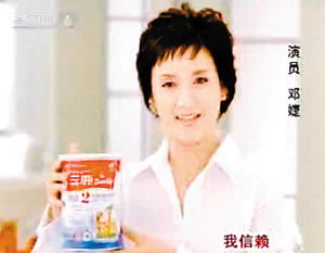 “專業生產,品質保證,名牌產品,讓人放心,還實惠,三鹿嬰幼兒奶粉,我信賴!”在網上流傳的三鹿嬰幼兒奶粉廣告視頻中,女明星鄧婕手舉罐裝三鹿嬰幼兒奶粉說著一段廣告詞。