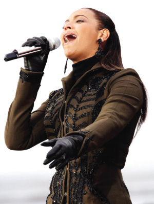 壓軸上場的格萊美得獎女歌手碧昂斯以一曲《美麗的亞美利加》引發(fā)全場大合唱,嘹亮、激昂的歌聲在現場上空久久回蕩。