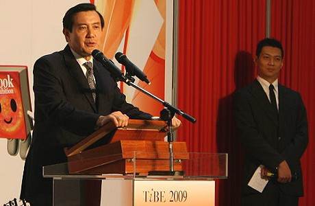 馬英九為臺北國際書展開幕,鼓勵大家多買書。