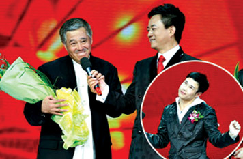 趙本山和小沈陽的春晚小品《不差錢》,昨晚捧得了小品類觀眾最喜愛的節目一等獎,趙本山在得獎感言時表示:“我最興奮的是,我兩個學生終于能站在這個舞臺上了,這讓我非常高興。”相較之下,倒是小沈陽的得獎感言很是簡單,只有“感覺很美”四個字。按照慣例,獲獎嘉賓要表演節目,而趙本山今年首次坐鎮觀眾席,讓徒弟小沈陽獨自撐場面,“咱們這幾個誰來都容易被哄下臺去,還是小沈陽來吧!庇谑,小沈陽獻唱了拿手曲目《大!,把張雨生的聲音模仿得惟妙惟肖,贏得觀眾陣陣掌聲。一曲唱罷,下臺前還摔了一跤,觀眾們頓時笑翻。而董卿立即上臺給他圓場:“小沈陽是在逗咱們,其實他到哪表演都摔。”