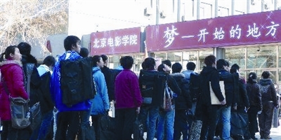 在影視界,“中戲”、“上戲”、“北電”呈三足鼎立之勢(shì),其地位無(wú)人可以撼動(dòng),人稱“明星搖籃”。近年來(lái)這三所學(xué)校藝術(shù)考試持續(xù)升溫,報(bào)考人數(shù)屢創(chuàng)新高。在北電,表演專業(yè)一直被認(rèn)為是最難考的專業(yè),雖然今年的招生人數(shù)由往年的30人增加到75人,報(bào)名人數(shù)卻高達(dá)4234人,淘汰率為98.2%。即便知道面臨著如此殘酷的競(jìng)爭(zhēng),可那些懷揣著明星夢(mèng)想的俊男靚女們,仍不遠(yuǎn)萬(wàn)里,從五湖四海為了一個(gè)共同的目標(biāo)走到了一起,懷著明星夢(mèng)擠上這座獨(dú)木橋。