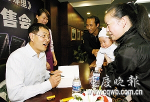 濮存昕一出場,就先跟等候的讀者們道歉:“剛到重慶,剛才參加了一個記者見面會,到這兒之后我又去了趟衛生間,耽誤了大家的時間了。”風趣的開場白贏來了在場觀眾的掌聲。簽售現場的女主持人也很喜歡濮存昕,激動之下,脫口而出:“要想了解濮老師的演技,就看《哈利波特》……”現場一陣爆笑,濮哥巧妙地化解尷尬:“別說,哈姆雷特的表情也很豐富的,很像哈利波特。”