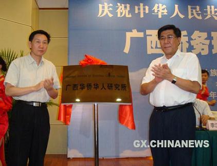 廣西僑務理論研究的重要基地——廣西華僑華人研究所9月24日在南寧掛牌成立,廣西壯族自治區政協副主席梁春祿、國務院僑辦政策法規司副司長范如松為研究所揭牌,廣西壯族自治區僑辦主任李漢金、廣西社會科學院院長呂余生等出席活動。此為廣西自治區僑辦充分利用廣西社科院東南亞研究所的資源和力量,發展廣西的僑務理論尤其是對華僑華人研究工作的重要舉措。