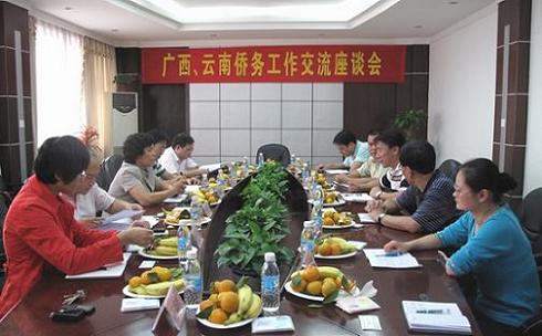 中新網(wǎng)10月29日電 據(jù)廣西僑辦消息,10月28日,為辦好第八屆東盟華商會(huì),云南省僑辦副主任張新明一行6人來(lái)到廣西,拜訪廣西僑辦。廣西區(qū)僑辦舉辦座談會(huì),雙方共同交流開展僑務(wù)經(jīng)濟(jì)科技工作的經(jīng)驗(yàn)和方法,并商議第八屆東盟華商會(huì)籌備工作的有關(guān)事宜。廣西區(qū)僑辦副主任林容蓉及有關(guān)處室領(lǐng)導(dǎo)參加座談會(huì)。