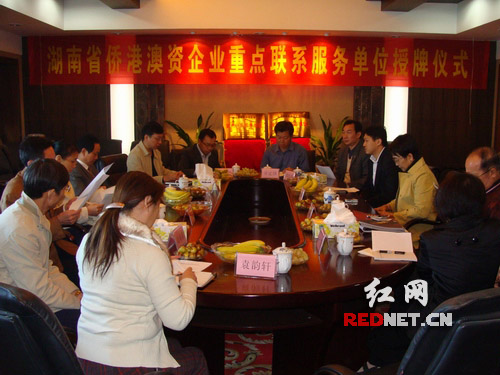 湖南省外事僑務辦公室從今年起,在全省范圍內開展“湖南省僑港澳資企業重點聯系服務”工作,對在湘僑港澳資企業實行掛牌重點聯系服務。11月4日上午,株洲金輪房地產開發有限公司和湖南炎帝酒業公司作為株洲市僅有的2家企業,獲得授牌。