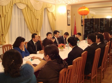 當晚,中國駐圣彼得堡總領事田二龍會見并宴請國僑辦代表團一行。