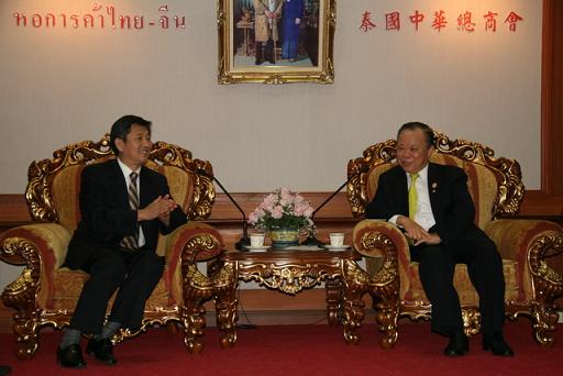 中新網11月27日電 據山東省僑辦消息,11月25日,山東省僑務訪問團赴泰國中華總商會拜訪。總商會副主席陳振志、劉暹有以及常務會董、會董、總干事等與訪問團見面。座談會后,雙方互贈紀念品,中國駐泰王國大使館僑務參贊左志強陪同拜訪。